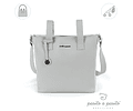 Bolsa pañalera o bolso para silla de paseo Biscuit en polipiel gris. Bolsa para silla de paseo, muy elegante y práctica, para llevar todo lo que necesite tu bebé. Incluye asa larga para colgar en el hombro. Forro interior blanco con bolsillos.